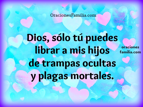 Señor, Dios nuestro, eres el único que puedes librar a mis hijos de toda trampa oculta y toda plaga mortal. En tus manos los dejo. Amén.